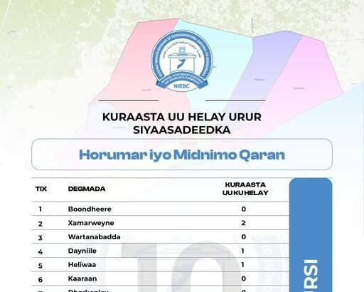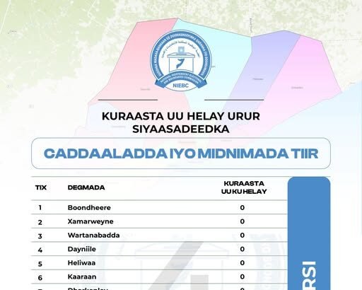 Guddiga Madaxa-Bannaan ee Doorashooyinka Qaranka iyo Soohdimaha ayaa Dowlad Goboleedka…