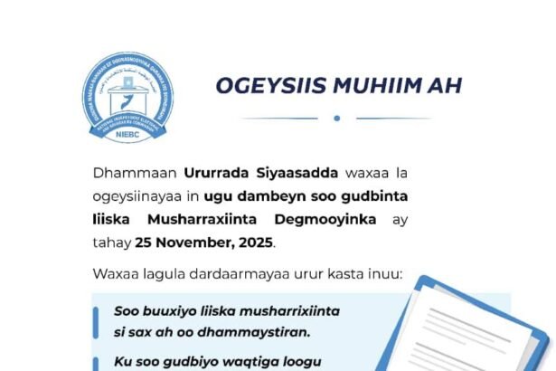 15-ka Nofeembar 2025, ayaa degmada Cabdicasiis laga bilaabi doonaa bixinta kaararka codbixinta. Muwaadin, haddii aad…