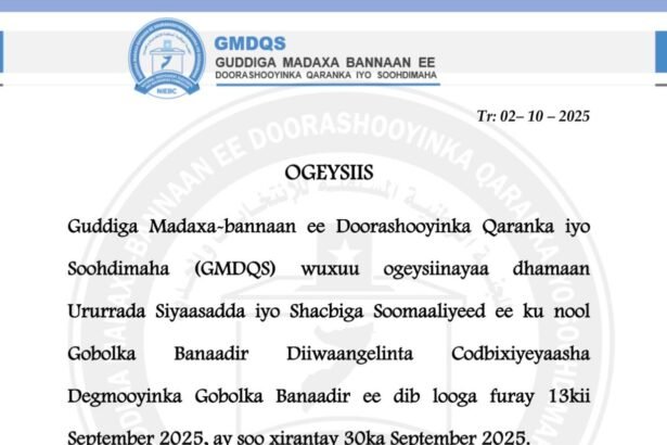 Guddiga Madaxa-Bannaan ee Doorashooyinka Qaranka iyo Soohdimaha(GMDQS) wuxuu ogeysiinayaa dhamaan Ururrada Siyaasadda iyo Shacbiga Soomaaliyeed…