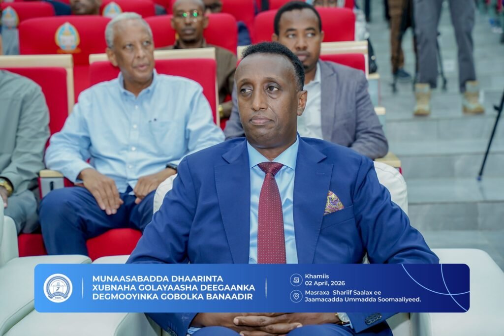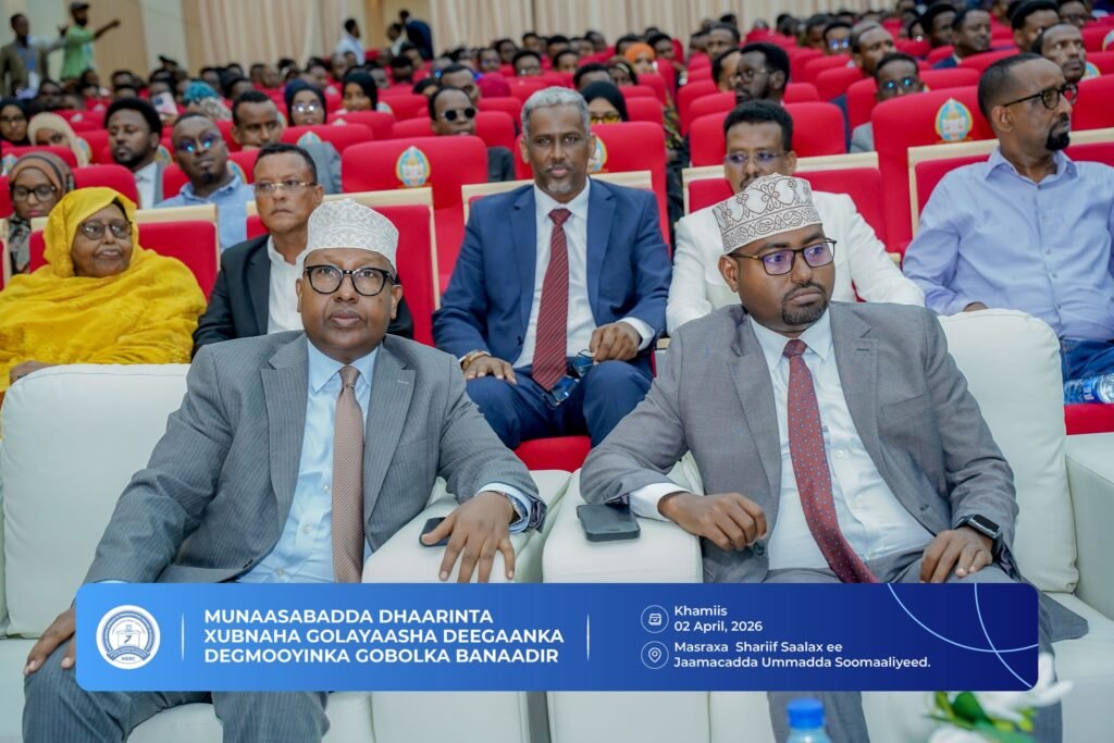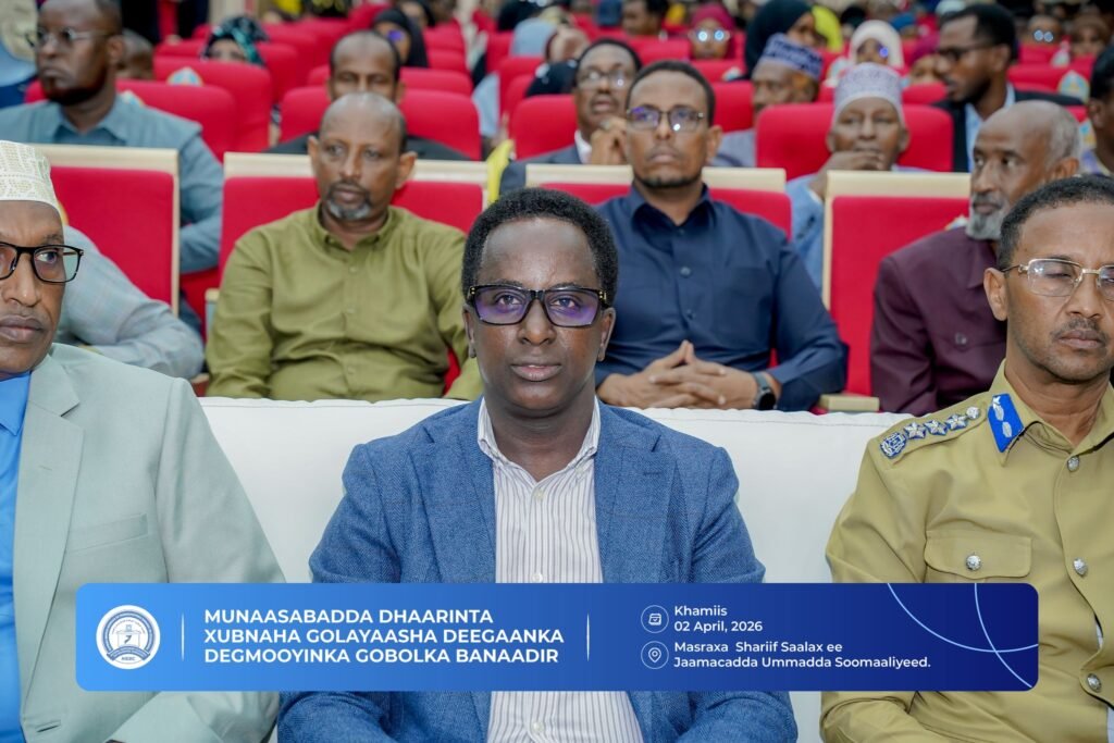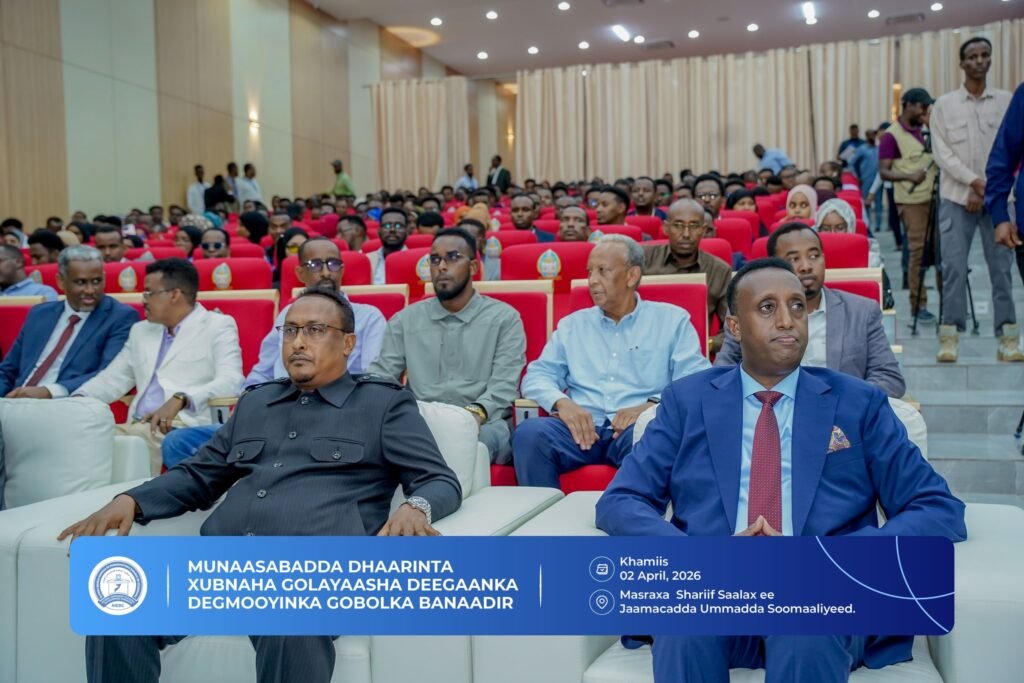 MUQDISHO, 2 Abriil 2026: Munaasabad si heer sare ah loo soo agaasimay oo lagu dhaarinayey xubnaha Golaha Deegaanka ee degmooyinka Gobolka Banaadir ayaa ka qabsoontay Masraxa Shariif Saalax ee Jaamacadda Ummadda Soomaaliyeed. Munaasabaddan oo ahayd mid taariikhi ah, waxaa ka soo qayb galay Guddoomiyaha Guddiga Madaxa bannaan ee Doorashooyinka Qaranka iyo Soohdimaha, Mudane Cabdikariim Axmed Xasan, hoggaanka guddiga, Maamulka Gobolka Banaadir, iyo mas’uuliyiin ka tirsan Xukuumadda Federaalka Soomaaliya.