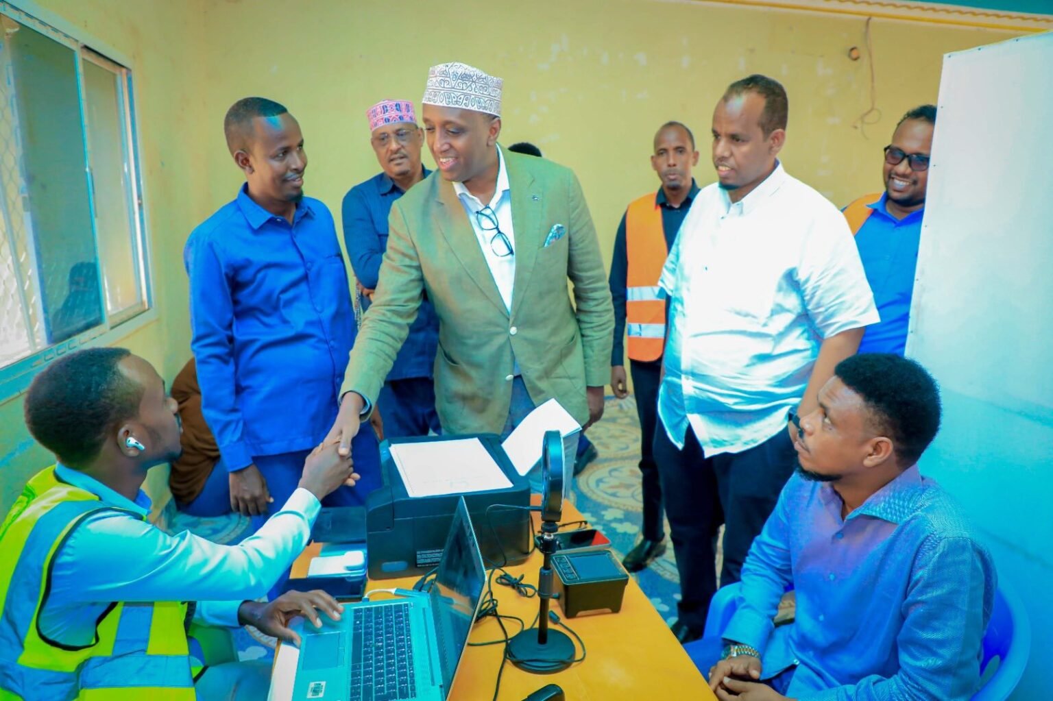 Guddoomiyaha iyo wafdigiisa ayaa booqday dhowr xarunood oo ay ka socoto adeegga bixinta kaararka, iyagoo warbixinno ka dhageystay hawlwadeennada guddiga ee ku sugan goobahaas. Mudane Cabdikariim ayaa bogaadiyay sida ay u socoto shaqada, isagoo hoosta ka xariiqay in kormeerkani qayb ka yahay dadaallada guddigu ku hubinayo hufnaanta iyo dhowridda nidaamka diiwaangelinta.