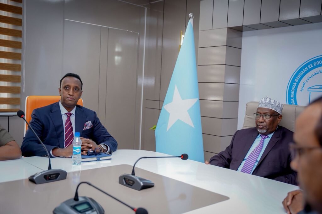 Muqdisho, 30, Oktoobar 2025:-Gudoomiyaha Guddiga Madaxa-Bannaan ee Doorashooyinka Qaranka iyo Soohdimaha mudane Cabdikariim Axmed Xasan iyo Guddoomiye ku-xigeenka Guddiga Mudane Saadaq Abshir Garaad oo ay wehlinayaan xubnaha Guddiga ayaa si diirran ugu soo dhaweeyey xarunta dhexe ee Guddiga Ku-simaha Madaxweynaha JFS ahna Guddoomiyaha Golaha Shacabka ee Baarlamaanka Jamhuuriyadda Federaalka Mudane Sheekh Aadan Maxamed Nuur (Aadan Madoobe) oo maanta booqasho ku yimid Xarunta Dhexe ee Guddiga.