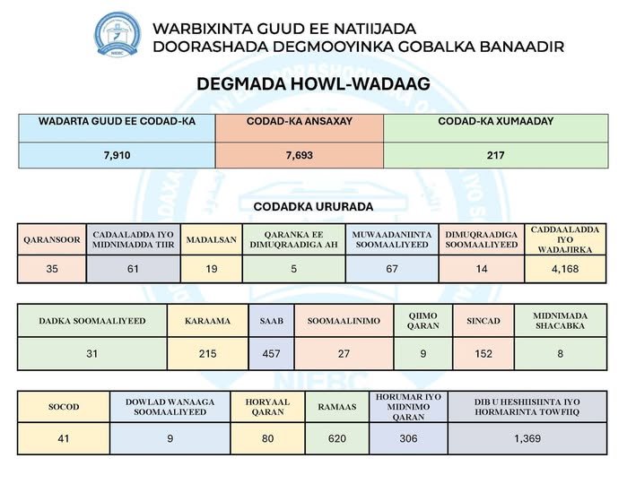 WARBIXINTA GUUD EE NATIIJADA DOORA SHOOYINKA GOBOLKA BANAADIR DEGMADA HOWL-WADAAG.