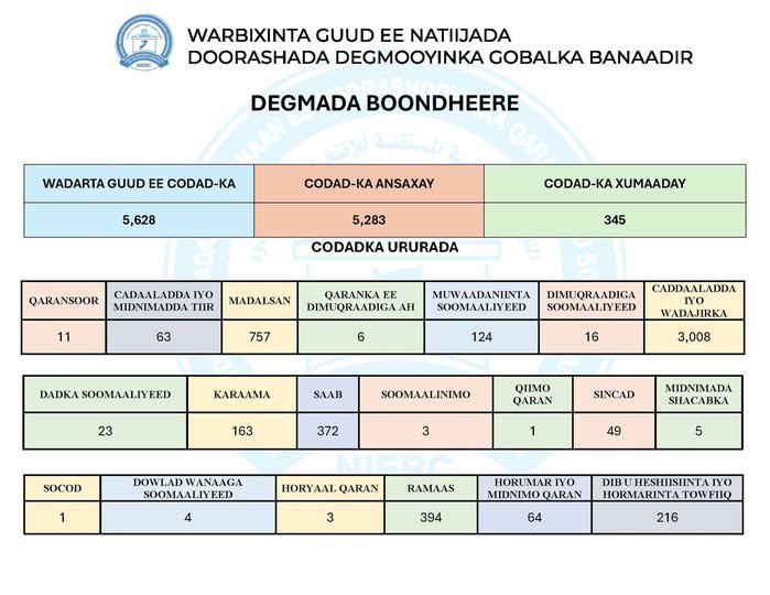 Gobolka Banaadir wuxuu si guul leh u soo gabagabeeyay doorashooyinkii taariikhiga ahaa ee Goleyaasha Deegaanka, kuwaas oo ka dhacay 17-ka degmo ee gobolka. Warbixintan waxay koobaysaa natiijooyinka horudhaca ah iyo kuwa rasmiga ah ee ay soo saareen guddiyada doorashada, iyadoo la raacayo codadkii ay dhiibteen muwaadiniinta is-diiwaangeliyay. Doorashadan ayaa muujisay bisayl siyaasadeed iyo ka qaybgal ballaaran, iyadoo ururrada siyaasadeed ee ku guuleystay kuraasta ugu badan ay hadda bilaabeen dhismaha goleyaasha deegaanka ee degmooyinka. Natiijadu waxay ka turjumaysaa rabitaanka shacabka ee ku aaddan helitaanka maamul tayo leh, hufan, oo u adeega baahiyaha asaasiga ah ee dadka ku nool caasimadda Muqdisho.