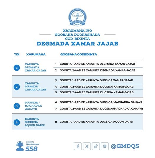 goobo iyo Xarumo cod-bixin oo si nidaamsan loo diyaariyey ayaa laga hirgeliyey Degmada Xamar-Jajab, si muwaadiniinta degmada ay u helaan fursad ay si xor ah, hufan, uguna ammaansan ugu gutaan waajibaadkooda codbixineed. Goobahan waxaa loo asteeyey in ay sahlaan hab-socodka codbixinta, isla markaana ay xaqiijiyaan kala dambeyn, amni, iyo habsaami socod-ka doorashada inta lagu jiro maalinta codbixinta.