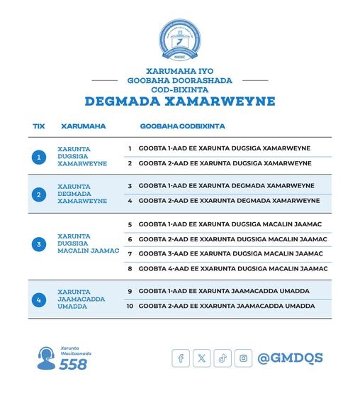 Degmada Xamarweyne, oo ah xudunta taariikhda iyo ganacsiga caasimadda, waxay si rasmi ah u qoondeysay xarumaha loogu talagalay habraaca cod-bixinta doorashooyinka 2025. Goobaha loo asteeyay codaynta waxaa ugu horreeya Xarunta Degmada Xamarweyne iyo goobaha waxbarashada ee ku yaalla xaafadaha degmada, si loo xaqiijiyo in dhammaan dadweynuhu si fudud u helaan adeegga codaynta. Maamulka degmada iyo hay’adaha amniga ayaa iska kaashanaya xaqiijinta nabadgelyada iyo habsami u socodka doorashada si ay muwaadiniintu u dhiibtaan codkooda si xor ah. Xarumahan ayaa loo diyaariyay agabka iyo nidaamka loo baahan yahay si loo ilaaliyo hufnaanta iyo kalsoonida geedi-socodka doorashada. Ka qaybgalka shacabka Xamarweyne waa tallaabo muhiim u ah xoojinta maamulka deegaanka iyo horumarinta mustaqbalka degmada.