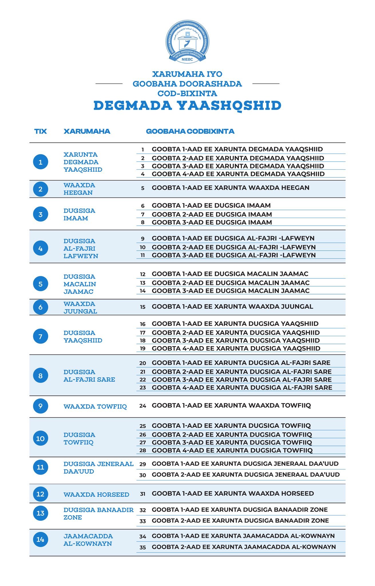 XARUMAHA IYO GOOBAHA COD-BIXINTA EE DEGMADA YAAQSHIID.